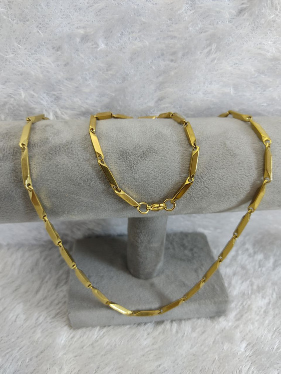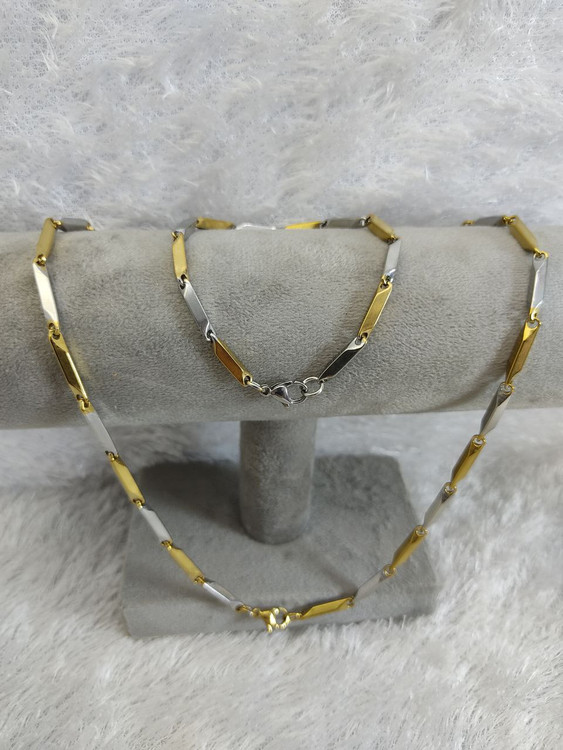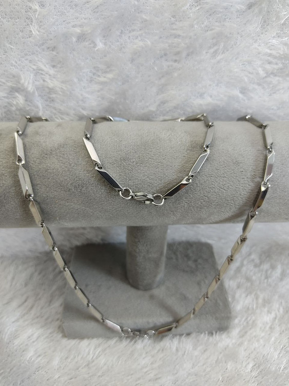 ست گردنبند و دستبند مردانه کبریتی نقره ای استیل رنگ ثابت