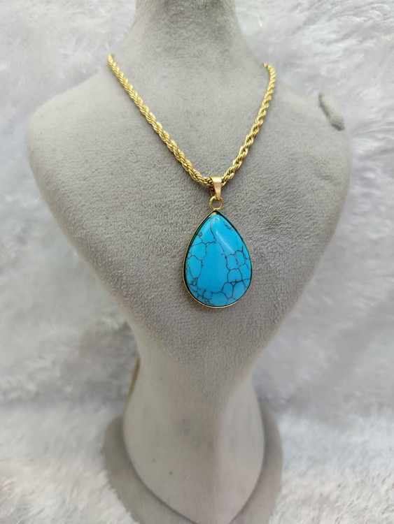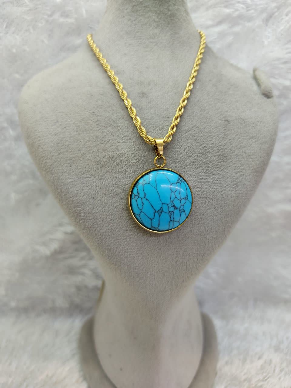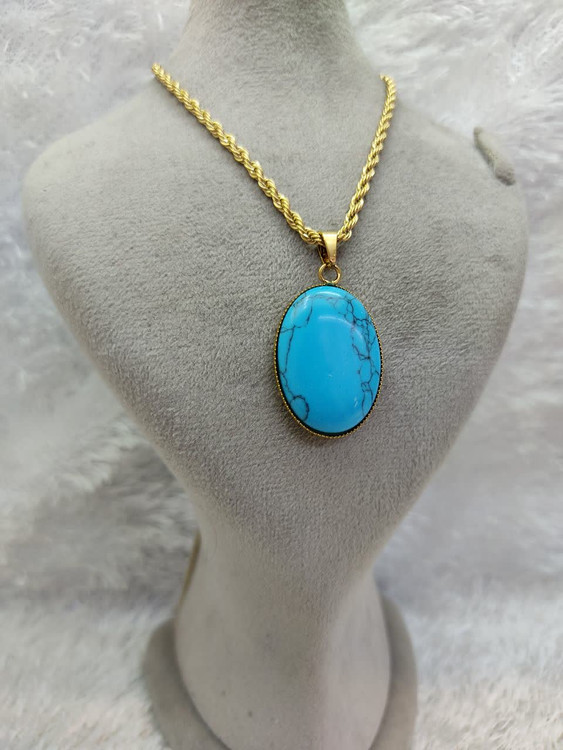گردنبند زنانه فیروزه و دلربا استیل ، پلاک و زنجیر فیروزه