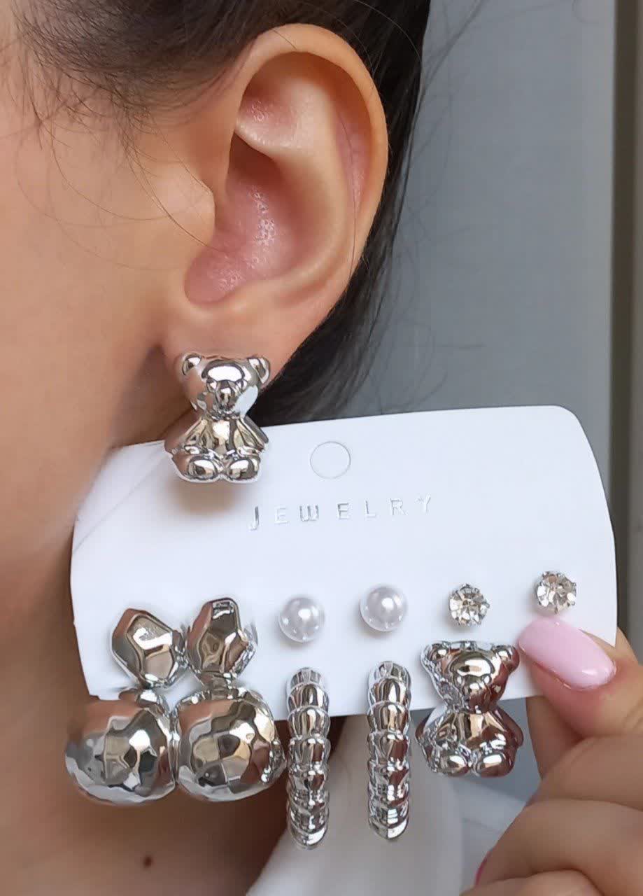 گوشواره میخی پک 6 تایی ،گوشواره فانتزی