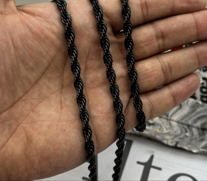 گردنبند طنابی مردانه مشکی استیل زنجیر 60 سانت 5 میل