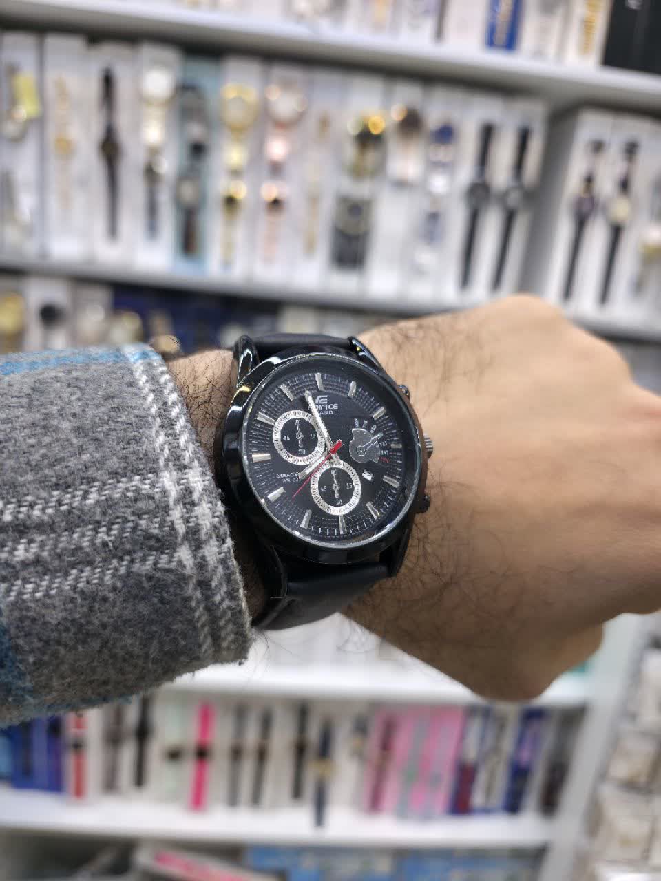 ساعت مچی مردانه کاسیو بند چرم دور صفحه استیل