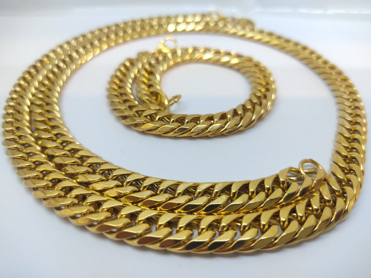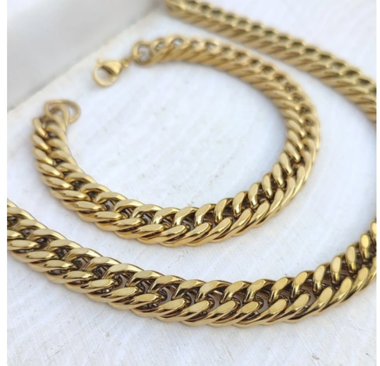 ست گردنبند و دستبند کارتیر استیل طلایی براق 9 میل