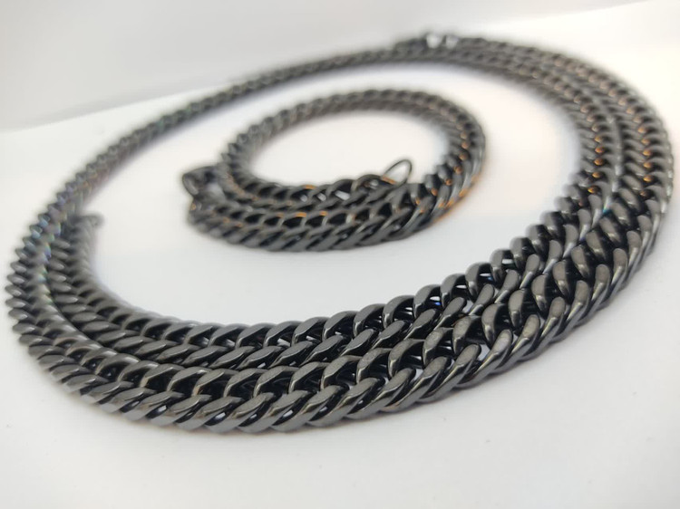 ست گردنبند و دستبند کارتیر استیل سباه قلم 8 میل رنگ ثابت