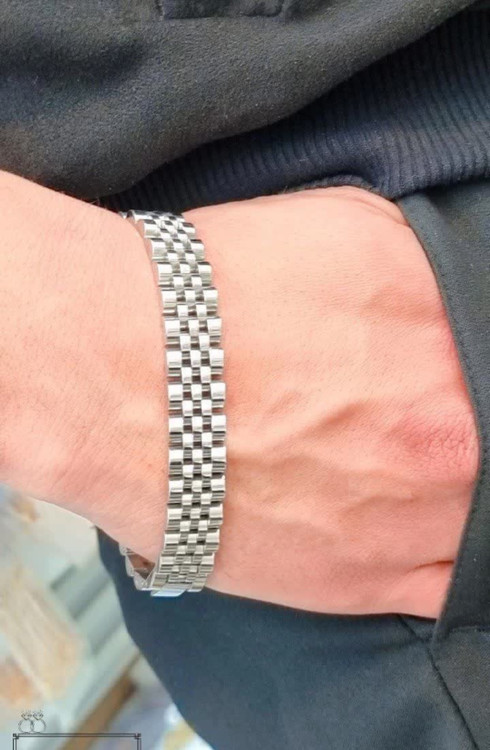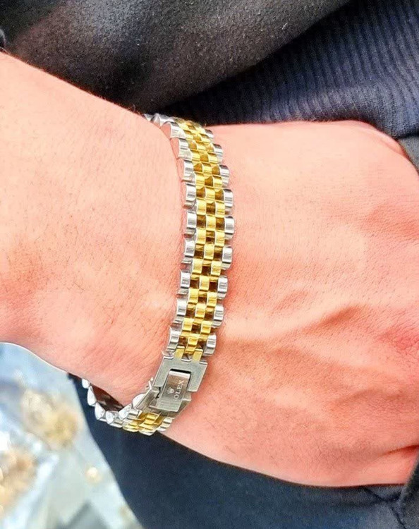 دستبند استیل مردانه رولکس ROLEX مدل ZDR01 دارای طراحی مدرن ، بسیار زیبا و جذاب میباشد. دستبند استیل مردانه طرح رولکس در مقابل تغییر رنگ بسیار مقاومت دارد. این دستبند دارای طول 21 سانتیمتری میباشد و با استفاده از قفلی محکم و با کیفیت باز و بسته میشود.این دستبند بسیار شیک بوده و میتوانید با انواع انگشتر آن را ست کنید.این محصول جهت هدیه دادن به عزیزانتان بسیار ارزنده میباشد. این دستبند جزء دسته اسپرت قرار میگیرد و بسیار جوان پسند میباشد
