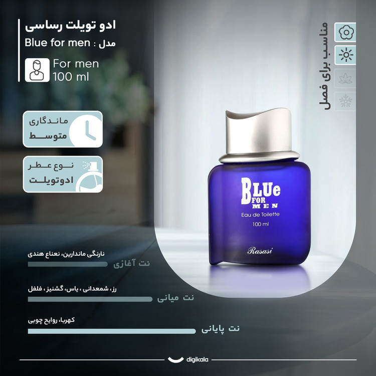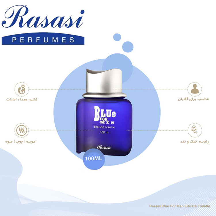 ادو تویلت مردانه رساسی مدل Blue for men با رایحه خنک و تند حجم 100 میلی لیتر