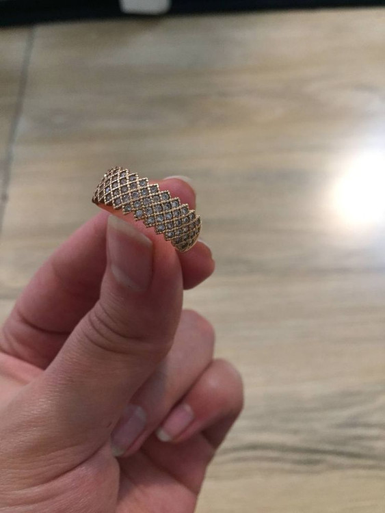 انگشتر زنانه ،مدل حلقه پرنس با نگین های توکار بسیار زیبا و جذاب می باشد . جنس اینکار طلا روس هست . ممکن است کار در صورت تماس با بدن هایی که عرق زیاد دارند و یا از الکل استفاده می کنند مقداری کدر شود که در این صورت می توانید آنرا با مقداری جلاسنج یا نوشابه به حالت اول برگردانید.
