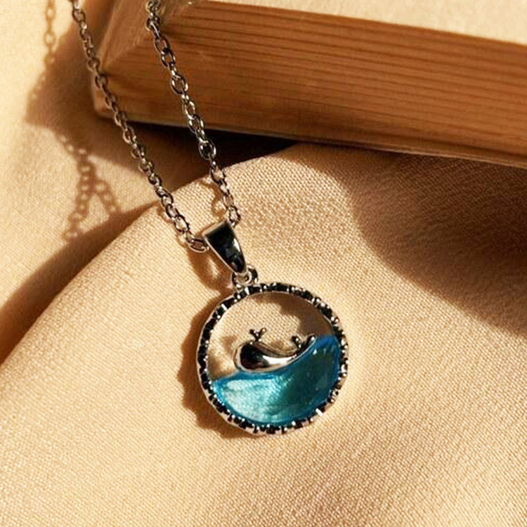 گردنبند زنانه مدل وال و دریا استیل رنگ ثابت بدون حساسیت